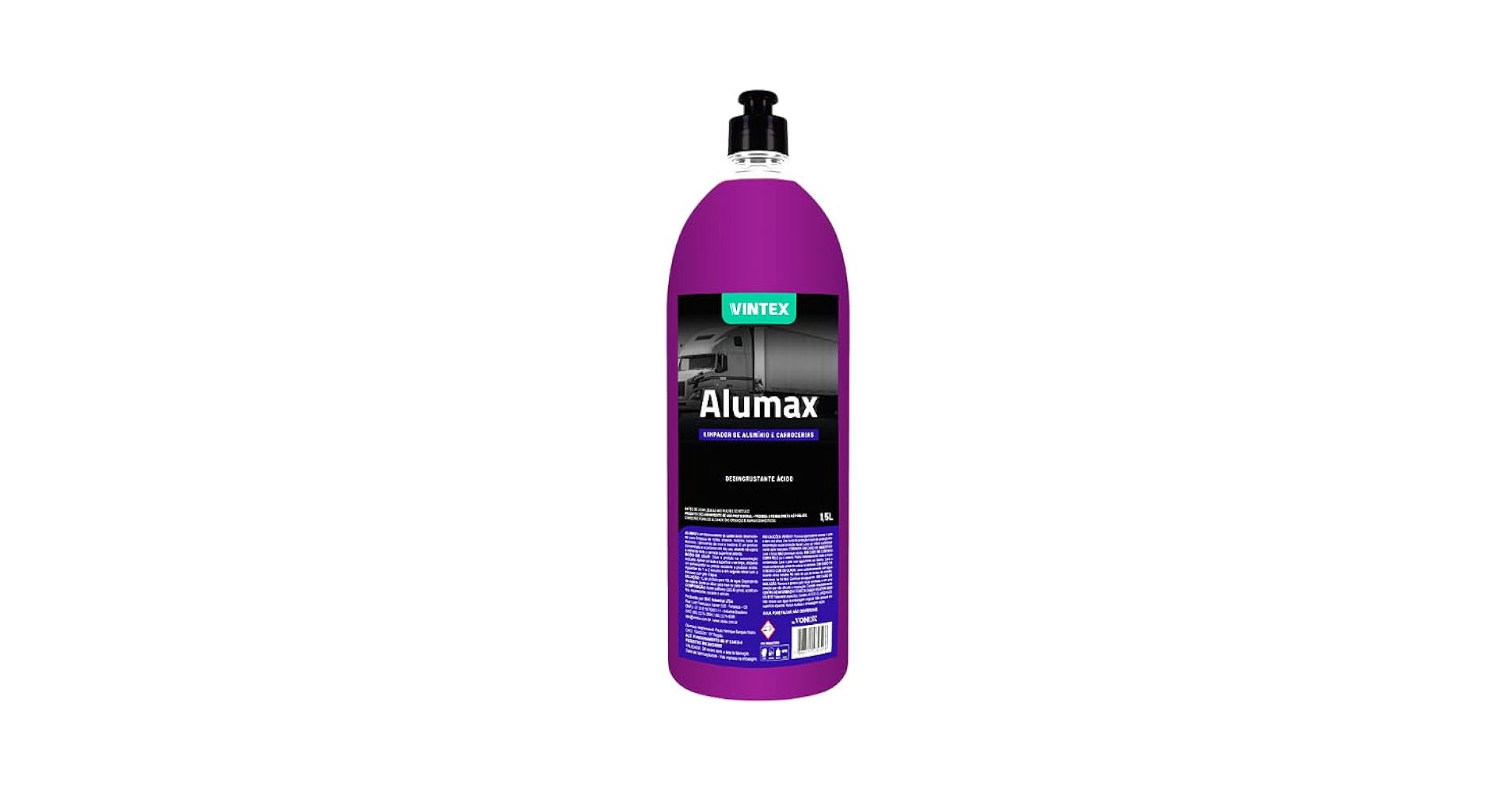 Alumax é um desincrustante de caráter ácido, desenvolvido para limpeza de rodas, chassis, motores, baús de alumínio, carrocerias de inox e madeira. É um produto concentrado e econômico em seu uso, atuando na sujeira e retirando toda a camada superficial aderida.