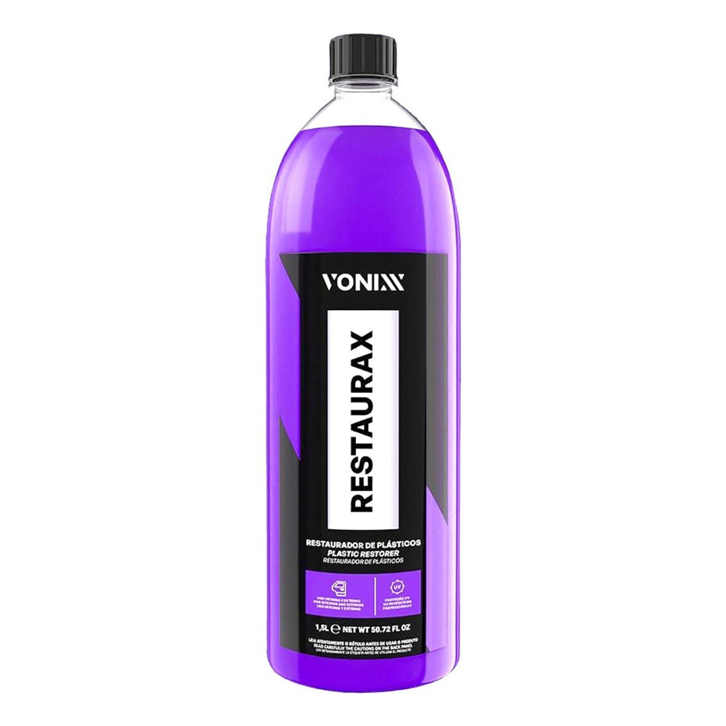 Restaurax renova e restaura superfícies plásticas, como para-choques, painés e laterais de portas. Sua fórmula contém polímeros especiais que também protegem as peças contra as ações do tempo, evitando degradação prococe do material